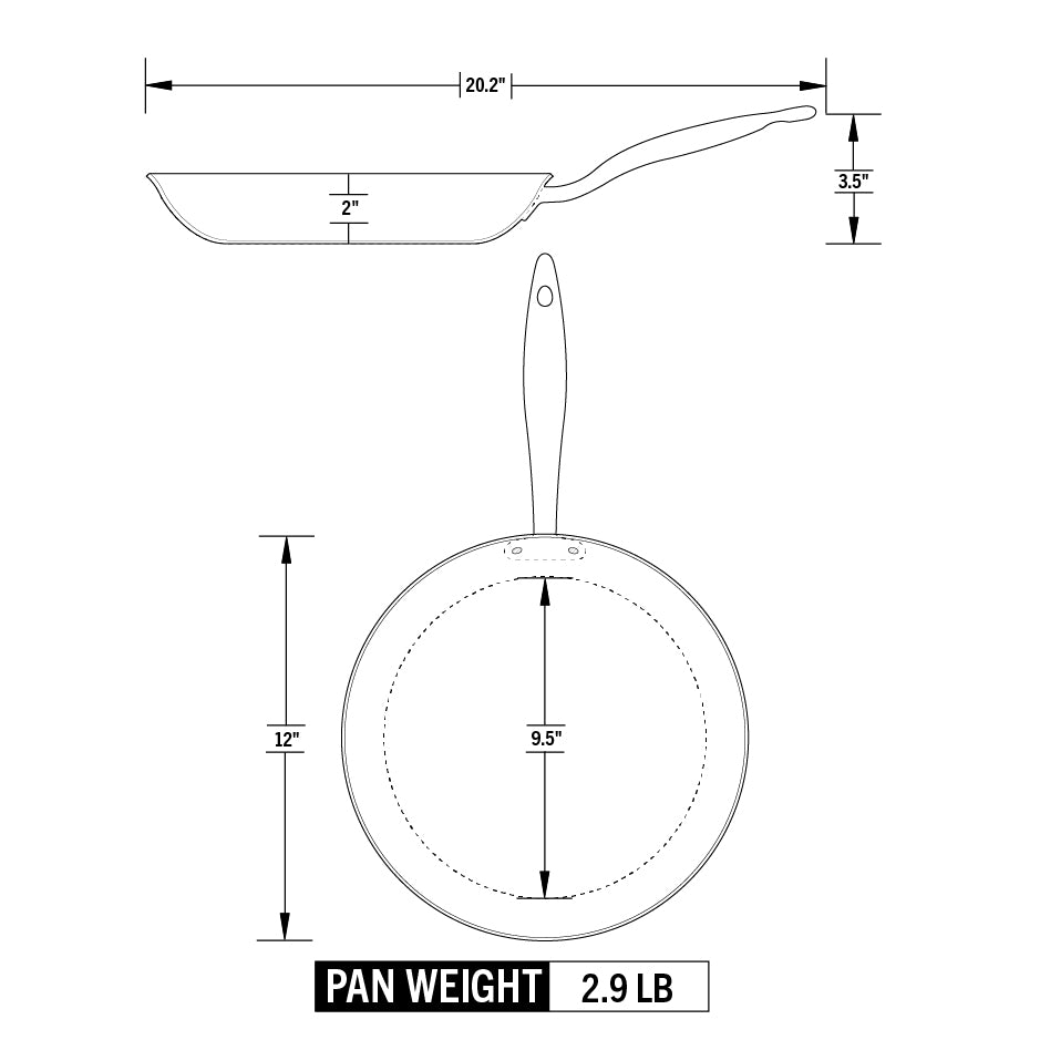 This pan is ideal for frying, browning, and sautéing. The curved sides allow you to toss and flip foods with ease. A great everyday workhorse.